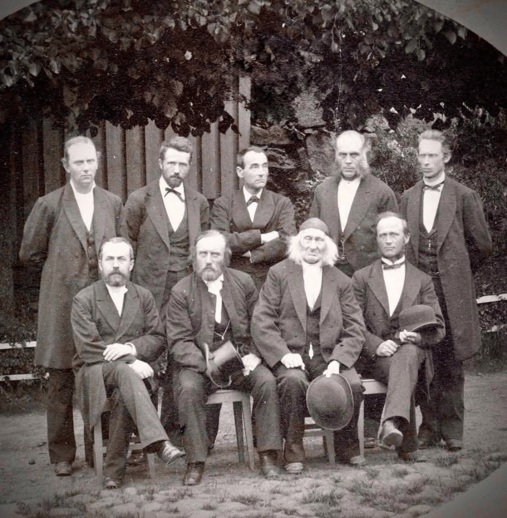 (above) This photo from July 23, 1884 shows members of the Arendal clergy attending the opening of a new church in Bjorbekk. Provst Cormontan, who had retired a year earlier, is seated in the front row, third from the left.