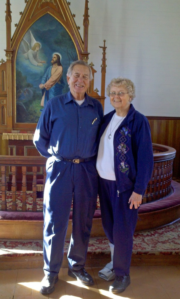 (above) Roger & Barb Nelson in 2011 at the Ft. Ridgely & Dale Church near Franklin MN, where Theodora worshiped and played the organ.