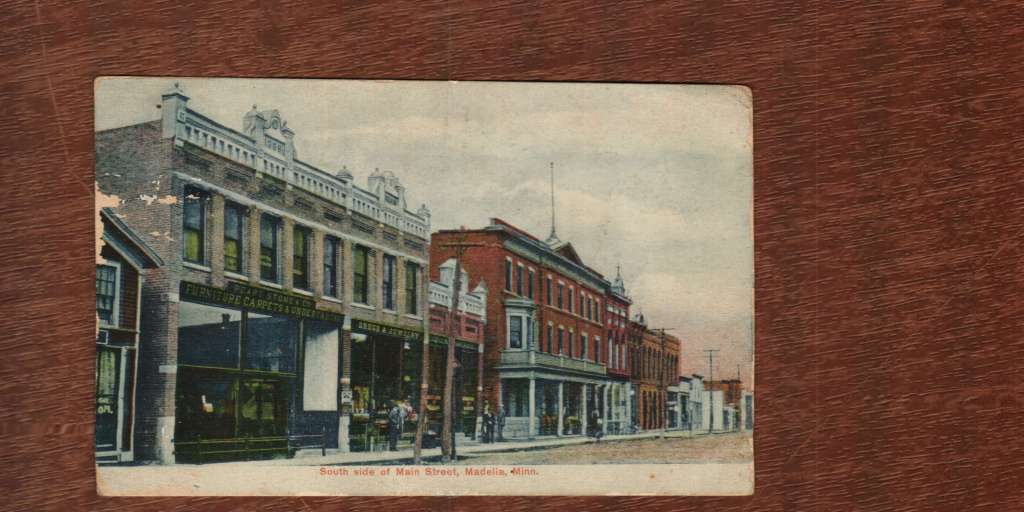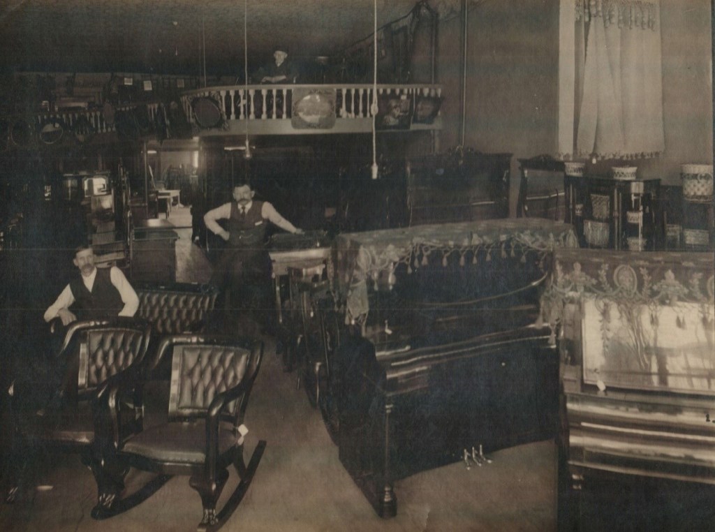 (above) The Wenstrom Furniture Store in St. James–the town’s first furniture store, located opposite the hospital. This picture was probably taken in 1905. Note that pianos are prominently featured. Owning and being able to play the piano was considered essential by many families at the turn of the century.