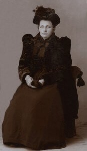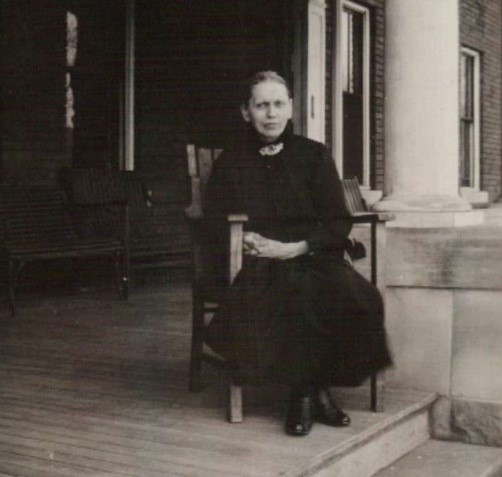 (above) Theodora Cormontan sitting on the front porch of the Aase Haugen Home circa 1920.