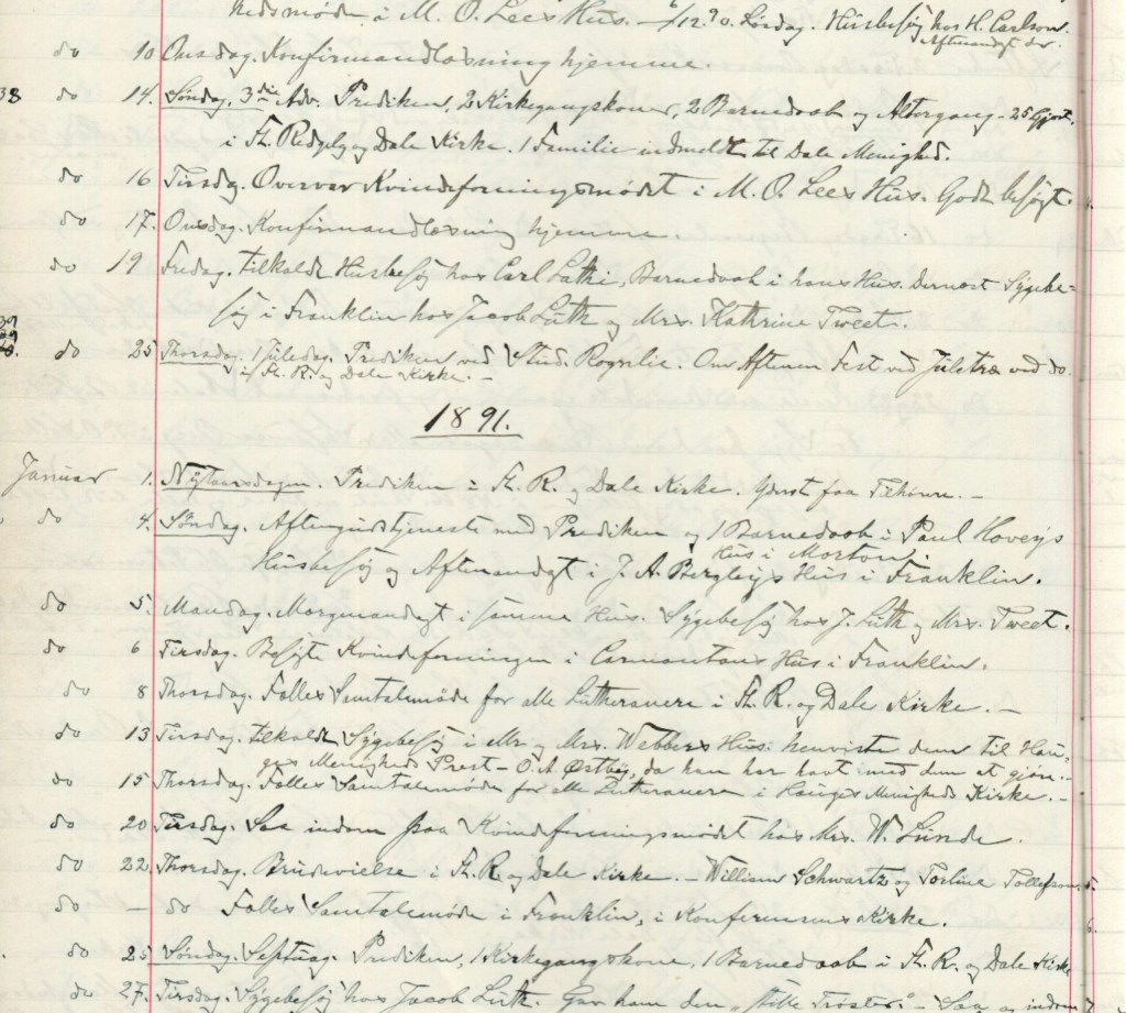 Theodora was in St. Paul again in March of 1891, according to the composition date written on one of her manuscripts. Also by 1891 C.G.V. was advertising his business in newspapers published in the towns of Franklin and Morton in Renville County, Minnesota. By 1892 Theodora played organ for at least two Franklin area churches, conducted choirs, and taught music lessons. The Morton Enterprise reported in April of that year “The lady [Theodora] is certainly an excellent teacher in vocal as well as instrumental music.” Also by 1892 she was traveling to nearby Morton, where she taught approximately fifty students. Around this time she saw several of her Norwegian language hymns published in a Norwegian magazine entitled Ugdommens Ven (The Youth’s Friend) and subsequently in a Norwegian Evangelical Lutheran hymnal called the Frydetoner (Joyful Songs). Her father Even Cormontan died in Franklin in 1893. C.G.V. and Hans were among a group of founders of the Concordia Evangelical Lutheran Church in Franklin. Seven of Theodora’s manuscripts carry dates that indicate that they were composed or edited while she lived in Franklin. It is likely that a number of the undated works were also written there.