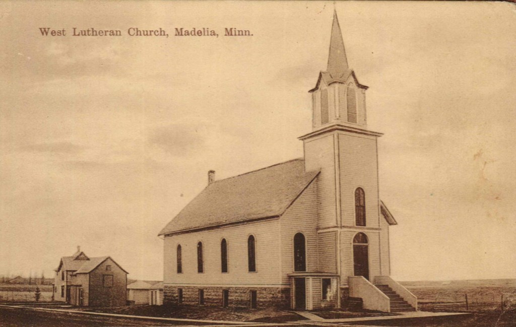 (above) A scan from the Norwegian Evangelical Lutheran/First Lutheran Church in St. James documents that at least three of the four family members joined the church on January 28, 1909, after having visited in 1908 and being designated “silent” members. Hans joined a year earlier. Note that the full names of all four family members are written out here–no “dittoes.” The First Lutheran Church was part of the United Synod, a change from the Norwegian Synod that had been the choice of the Cormontan family when they lived in Franklin. The Madelia West and Lake Hanska churches were also part of the United Synod when the Cormontan family was members.