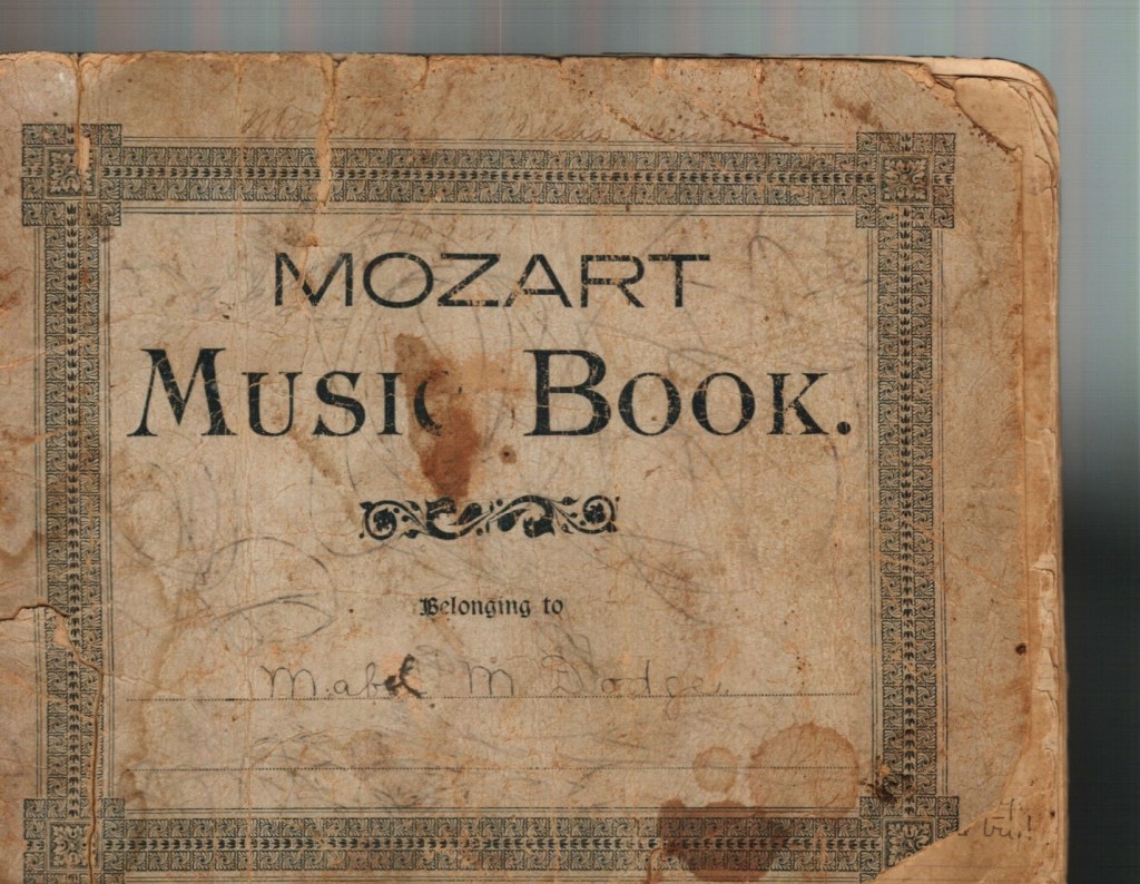 The music book looks like it was used in the 1890’s: for example, on one page it appears to quote (fairly inaccurately) a line from Ethelbert Nevin’s “The Rosary,” published in 1898. It is possible that Mabel took some piano lessons from Theodora in the first decade of the 1900’s; it is almost certain they knew each other, since Theodora taught the school song to Mabel’s high school graduating class in addition to living in the home of Mabel’s brother.