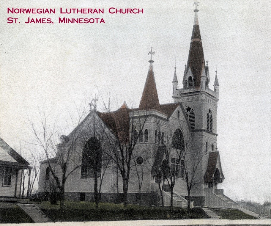The 9/17/1909 edition of the St. James Journal Gazette noted on page 1 that a program would be offered on Tuesday, September 21 under the auspices of the “Mission Band” at the Norwegian Lutheran Church. The program included recitations, songs, a speech by Rev. L.P. Thorkveen, a Mission offering, and two piano solos by “Miss Cormontan.”