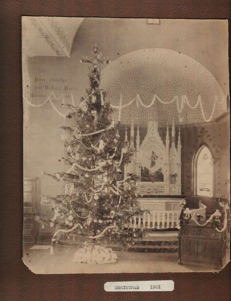 West Lutheran Church (above): the outside of the church, how the sanctuary looked while the Cormontan family attended, and their Pastor Lars E. Green.