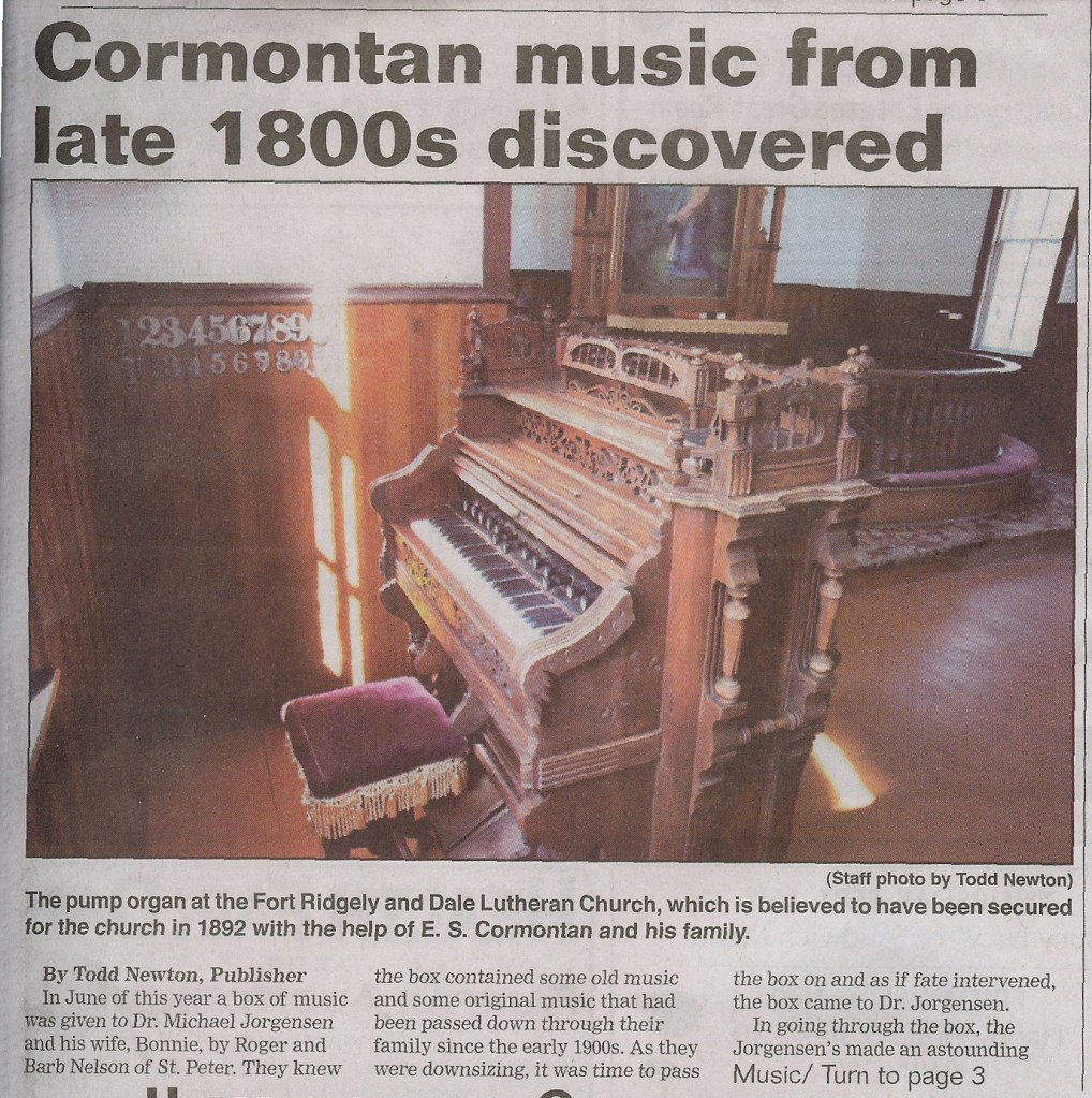 (above) The pump organ located in the Fort Ridgely and Dale Church between Franklin and Fairfax, Minnesota (photo taken in 2011). This is the organ procured by the Cormontan family in 1892.