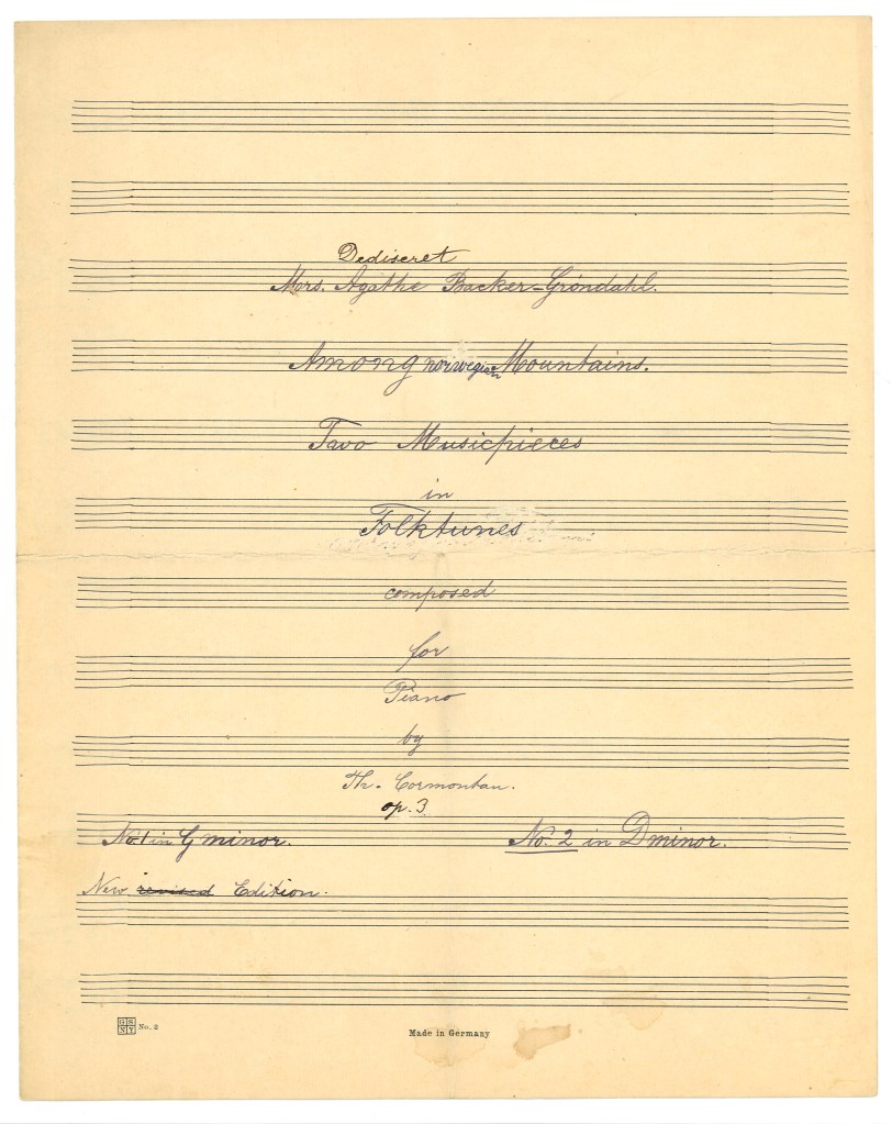 (above) A copy of the front cover of Cormontan’s one piano piece published by Warmuth, Blandt Fjeldene.